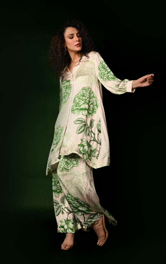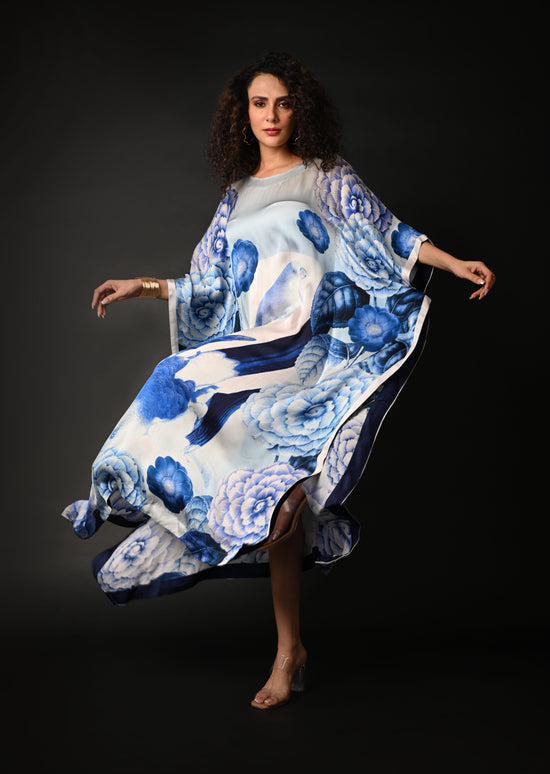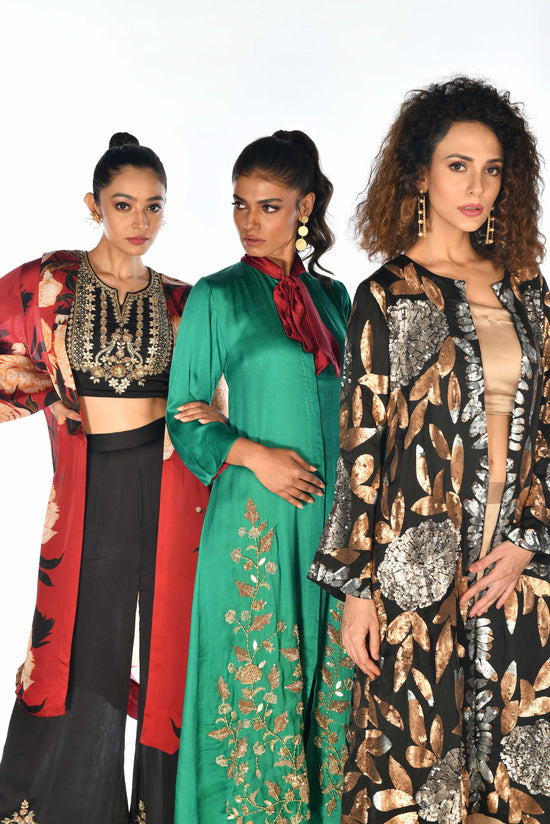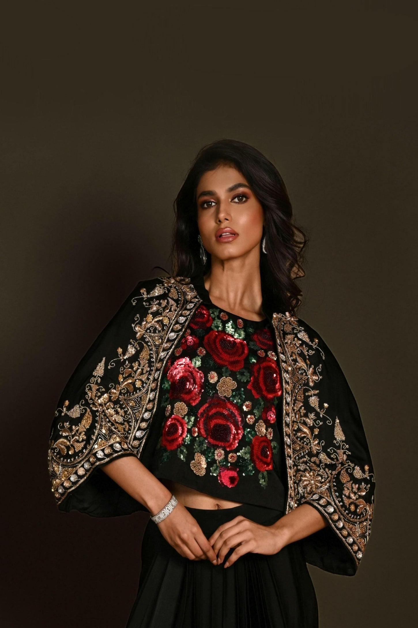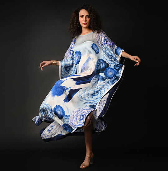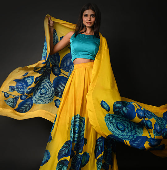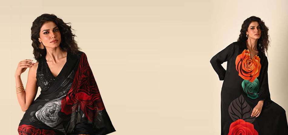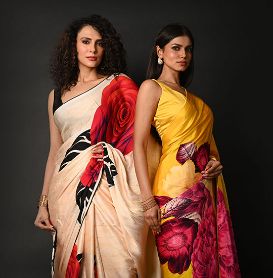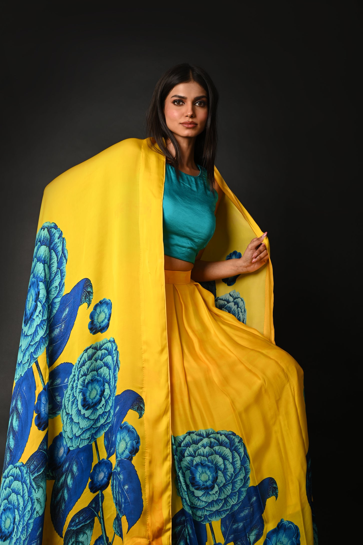 Digital Printed Saree with satin border. Comes with sequins stitched blouse. Number of components : 2