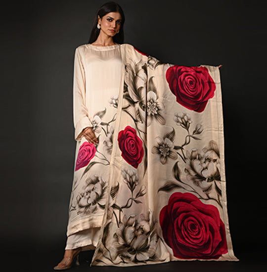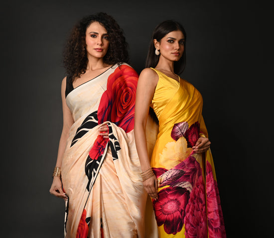 Digital Printed Saree with satin border. Comes with an unstitched blouse. Number of components : 2